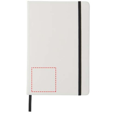 Spectrum vit anteckningsbok A5 med färgad kontrast. Vit A5 anteckningsbok med kontrastfärg på resårband och avdelare. Inklusive 80 ark linjerat papper (60 g/m²). Kan märkas med digitaltryck på omslaget. PVC täckt kartong.