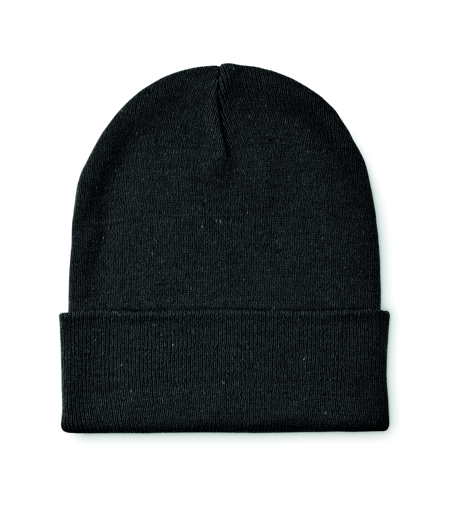 Unisex stickad mössa i mjuk, stretchig polyester (64%) och akryl (36%) med upprullad mudd. En stretchig one-size-fits-all design.