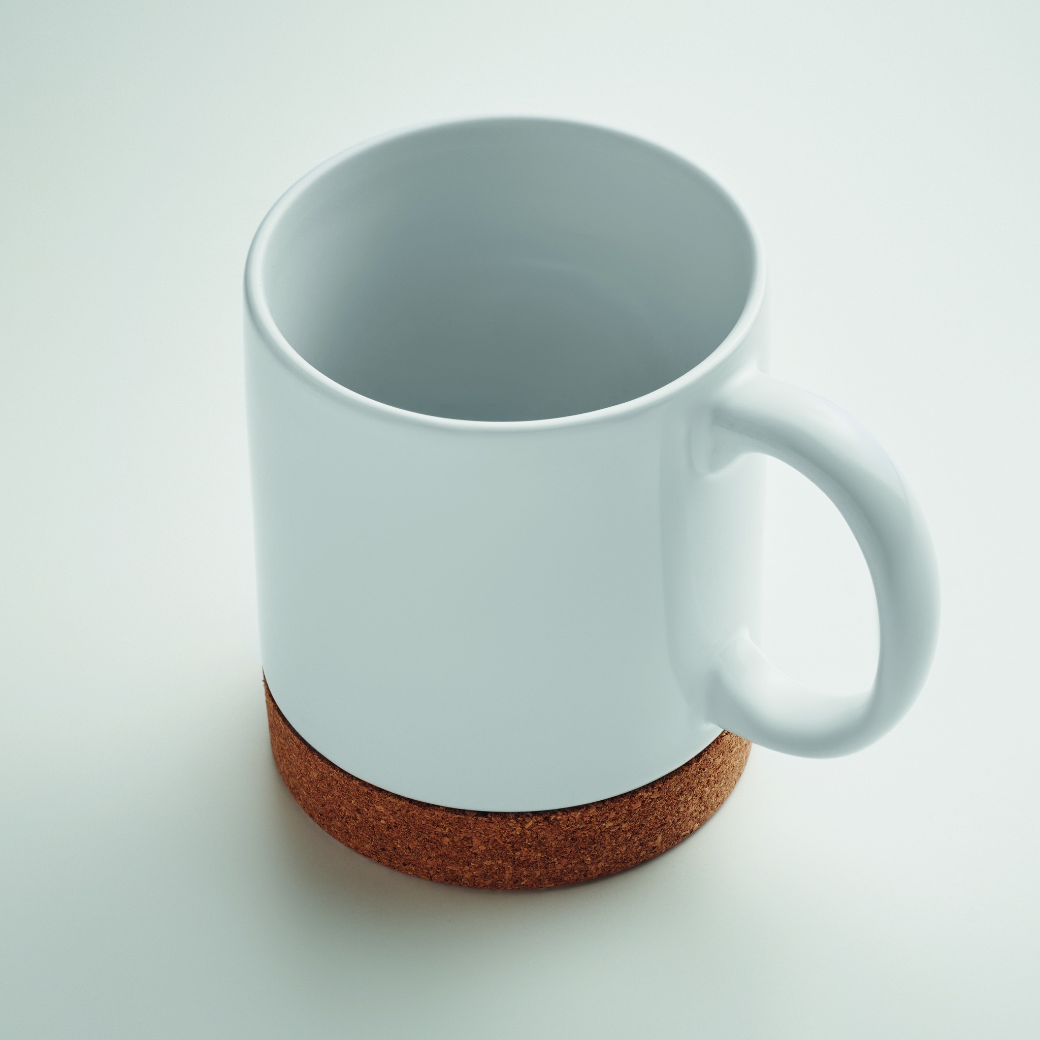 Keramik mugg med specialbeläggning för sublimeringstryck samt med korkbotten. Volym: 280 ml.