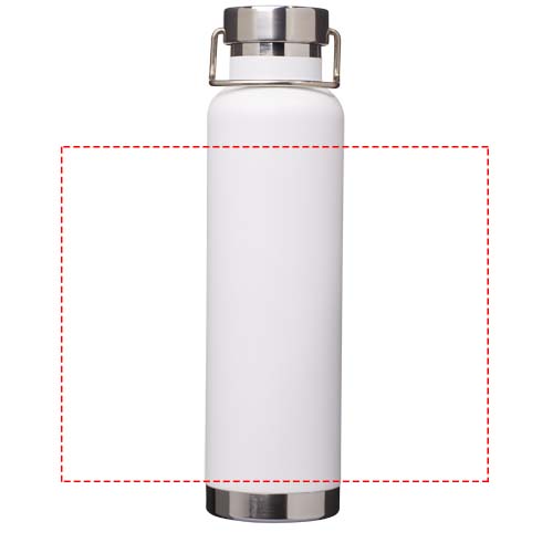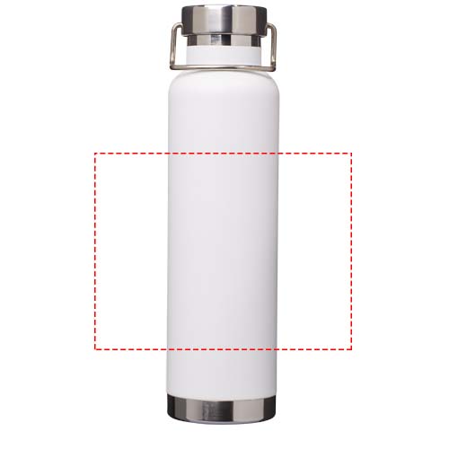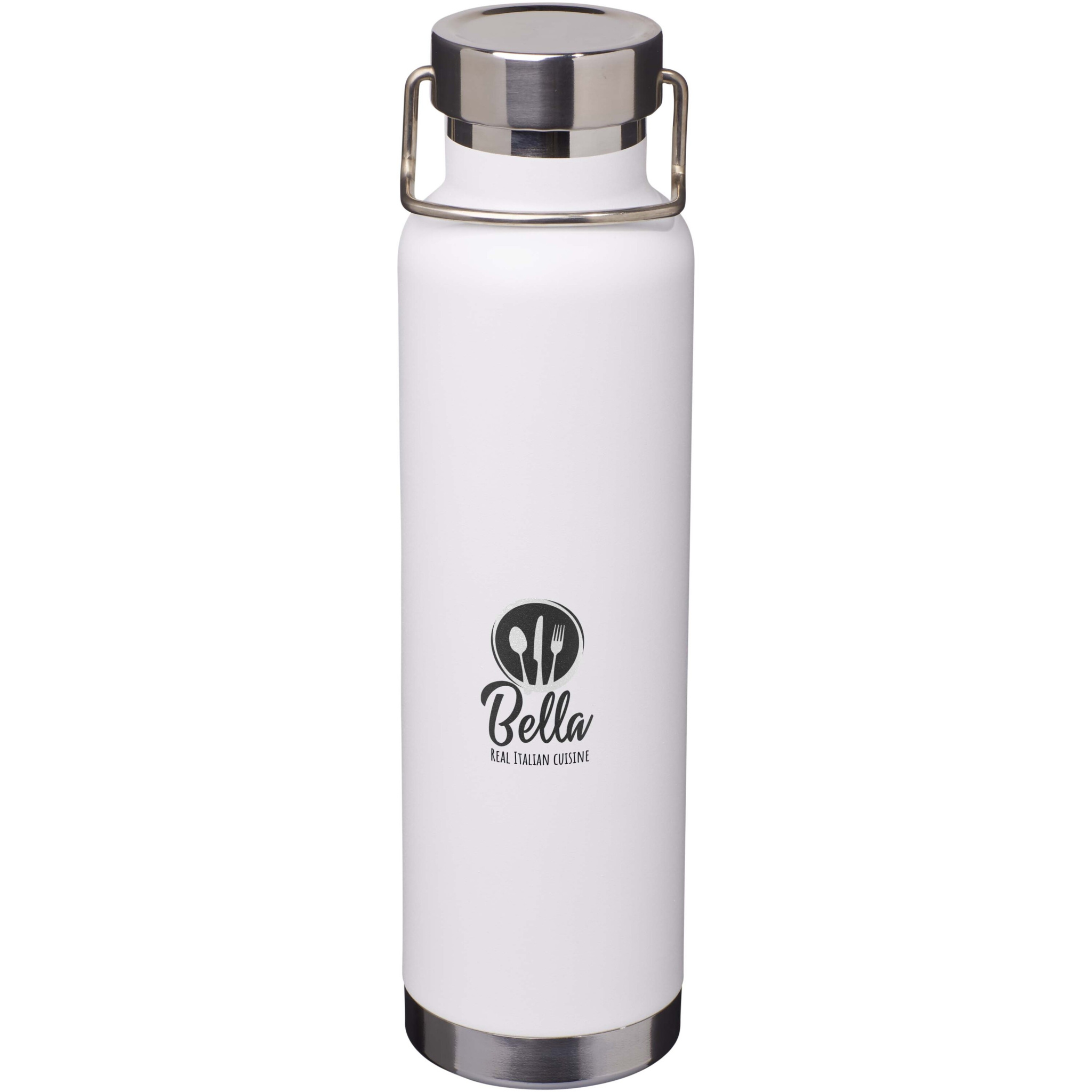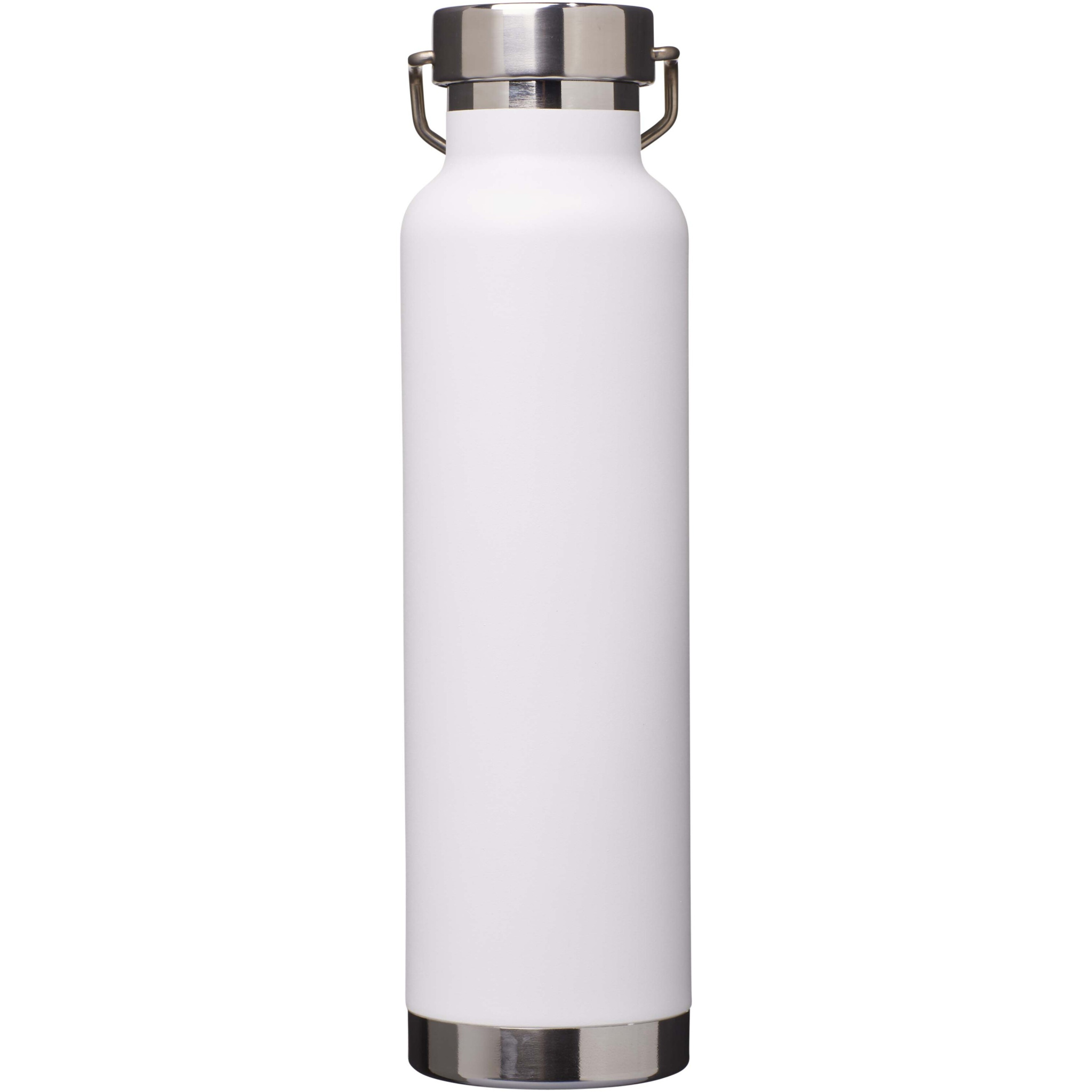 RCS-certifierad, dubbelväggig flaska av återvunnet rostfritt stål med vakuumisolering av koppar. Har ett skruvlock av återvunnet rostfritt stål med en hållbar handögla i rostfritt stål. Bred öppning för bekväm påfyllning och hällning. Volymkapacitet: 650 ml. Levereras i en presentförpackning.