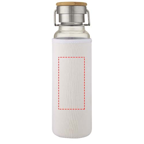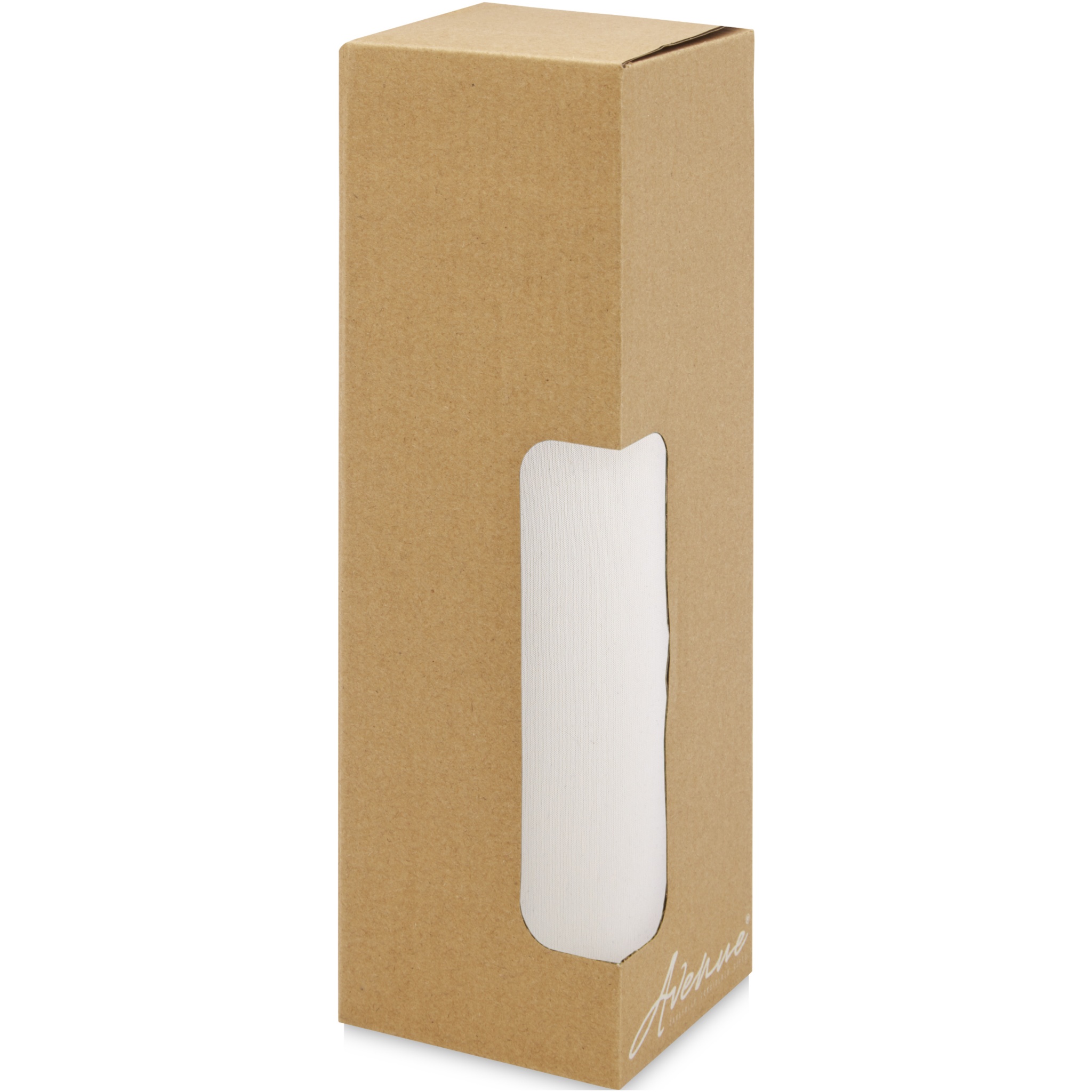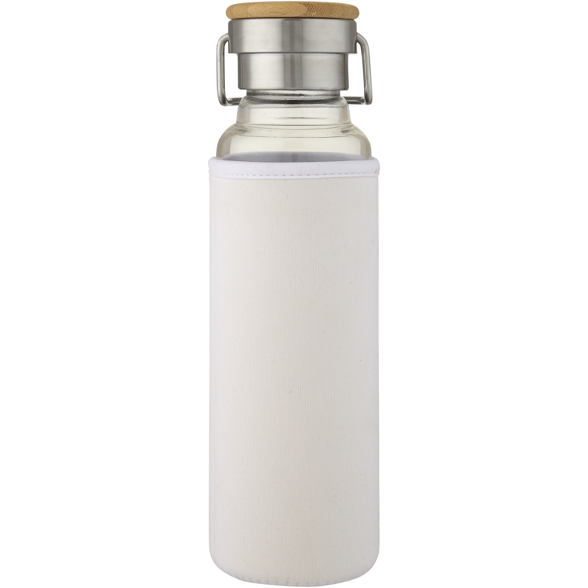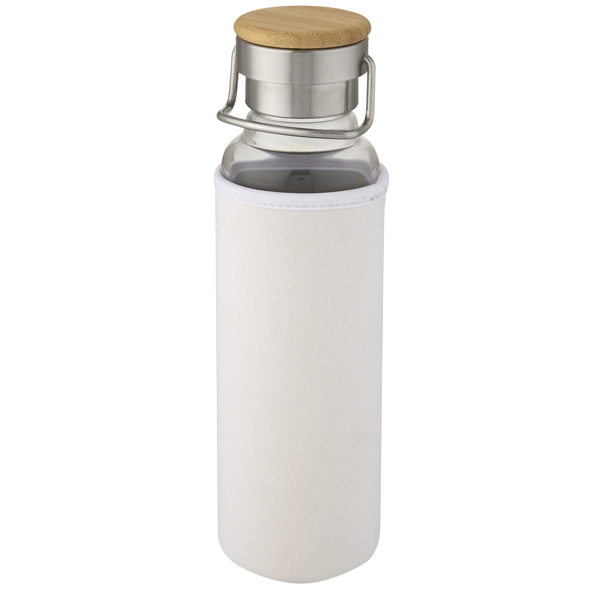 Borosilikatglasflaska med enkelvägg och skyddsfodral av neopren. Har ett skruvbart lock med bambutopp, samt ett handtag för att enkelt bära med sig. Flaskan är tillverkad av 100 % hållbart borosilikatglas som bevarar färskheten i drycken och innehåller inte några skadliga kemikalier. BPA-fri, testad och godkänd enligt tysk lagstiftning om livsmedelssäkerhet (LFGB). Testad och godkänd för ftalatinnehåll enligt REACH-förordningarna. Den bambu som används är från hållbara, miljömässigt och socialt ansvarsfulla källor. Volymkapacitet 660 ml. Genom att ta bort neoprenfodralet och locket tål flaskan maskindisk. Levereras i en återvunnen presentförpackning av kartong.
