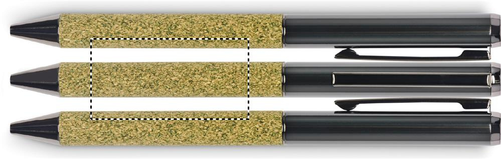 Twistpenna med tyg på skaftet tillverkade av 20% tesump, 30% kork, 50% TC polycotton tyg i kartong. Blått bläck.