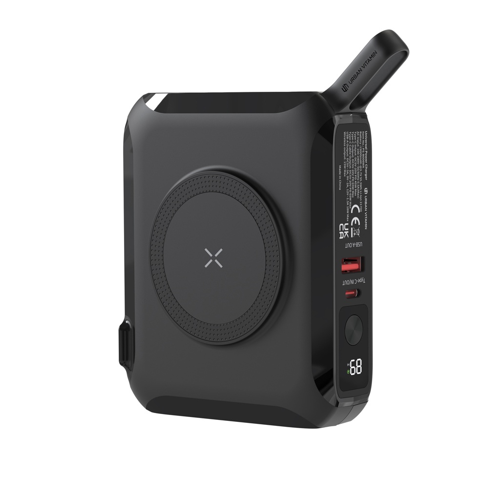 Oxnard 5 in 1 65W universalladdare är en kraftfull bärbar enhet som tar din laddningsupplevelse till nya höjder med mångsidighet, bekvämlighet och kraftfull prestanda. Laddaren har en 15W magnetisk laddare för de senaste iOS- och Android-telefonerna. Med batterikapacitet på 15.000 mAh och en robust PD 65 W type C-output via den integrerade type C-kabeln kan du ladda dina enheter blixtsnabbt, inkl. laptops som kräver hög effekt. Oxnard är också utrustad med en snabbladdande type C in/out-port och en USB A-output. Med 4 typer av AC-kontakter kan du enkelt övervinna laddningsutmaningar i över 150 länder. Ladda upp till 4 enheter samtidigt, samtidigt som laddaren själv laddas när den är ansluten till ett eluttag. Den kompakta storleken gör den enkelt att alltid ha med sig.