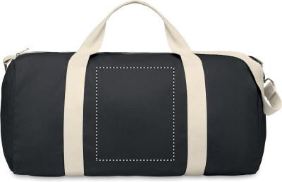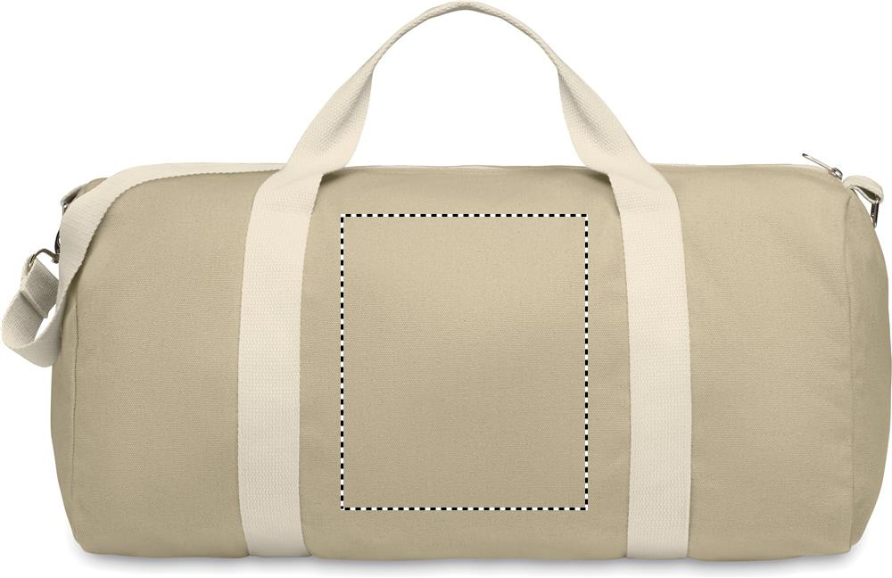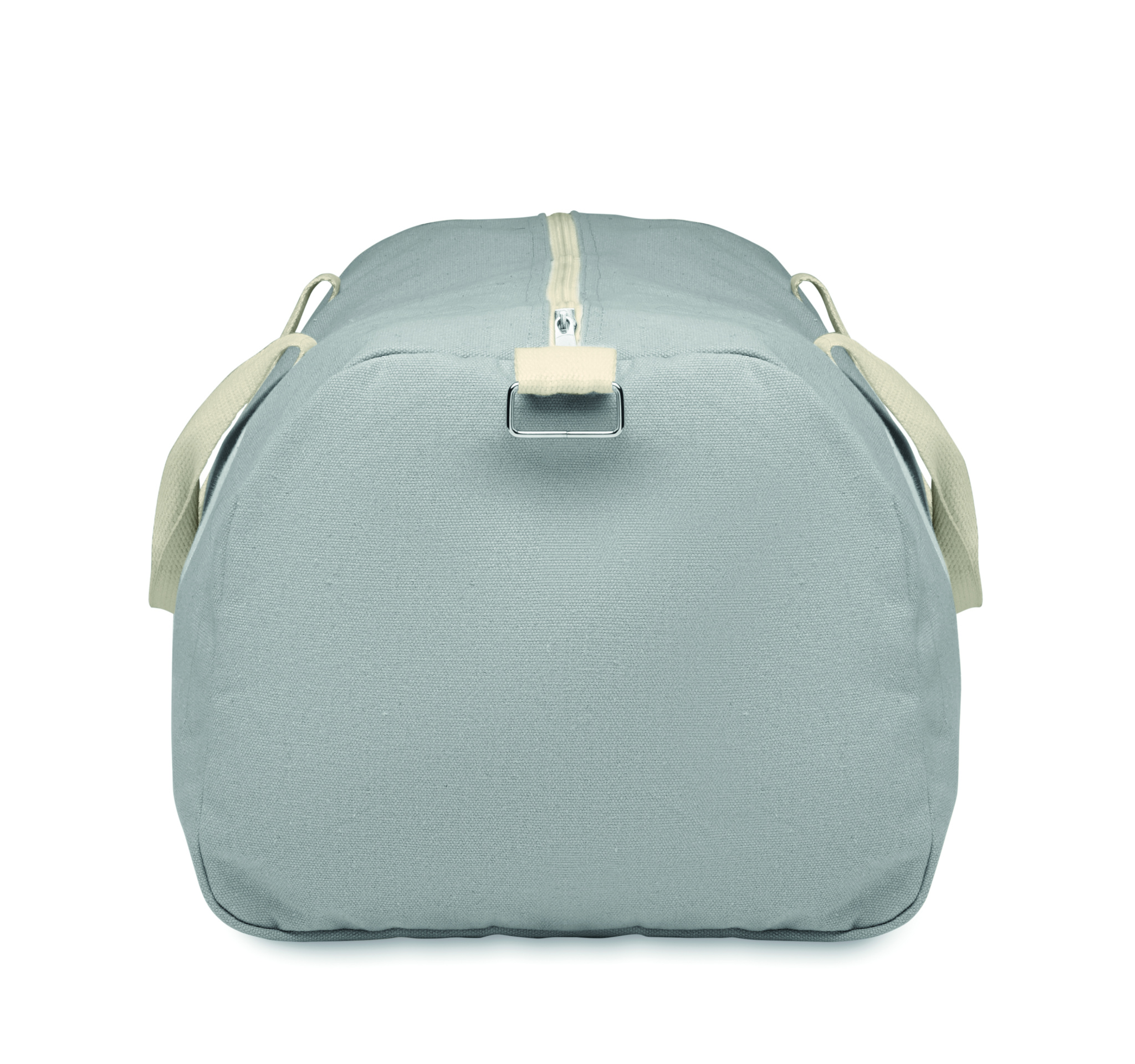 Dufflebag/väska i återvunnet material (60% återvunnen bomull, 40% återvunnen polyester) i 320 gr/m² med handtag i naturfärgad bomullsväv och en justerbar och avtagbar axelrem.