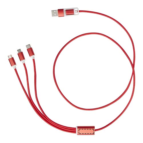 Denna kabel har en USB-A- och en Typ-C-ingångskontakt kombinerad med en Typ-C-, en mikro- USB och en Lightning/mikro USB-kombi-utgångskontakt. Tack vare alla dessa anslutningar kan du ladda de flesta iOS/Android-smarttelefoner, kameror, powerbankar och öronsnäckor. Kabellängden är 100 cm och är tillverkad av återvunnen aluminium och RPET.