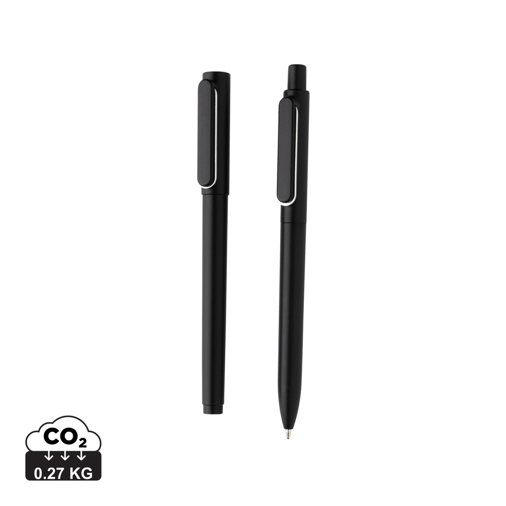 Pennorna i detta set har en metallfinish och metallclip. Setet innehåller en X6 penna och en X6 cap pen. X6 pennan har ca. 1200m skrift, blått tyskt Dokumental®-bläck och TC-kula för extra skön skrivkänsla. X6 cap pennan har blått bläck med låg viskositet som ger en ännu skönare skrivkänsla. Låg viskositet ger ett bättre flöde för bläcket vilket förbättrar smidigheten. Ca. 800m skrift. Båda pennorna har blått bläck. Levereras i en färgmatchande presentkartong.